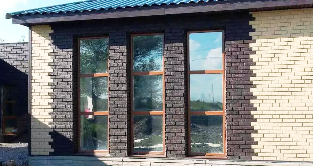 Такой способ отделки обеспечивает долговечность, не требует ухода позволяет выбрать разнообразное визуальное оформление фасада.