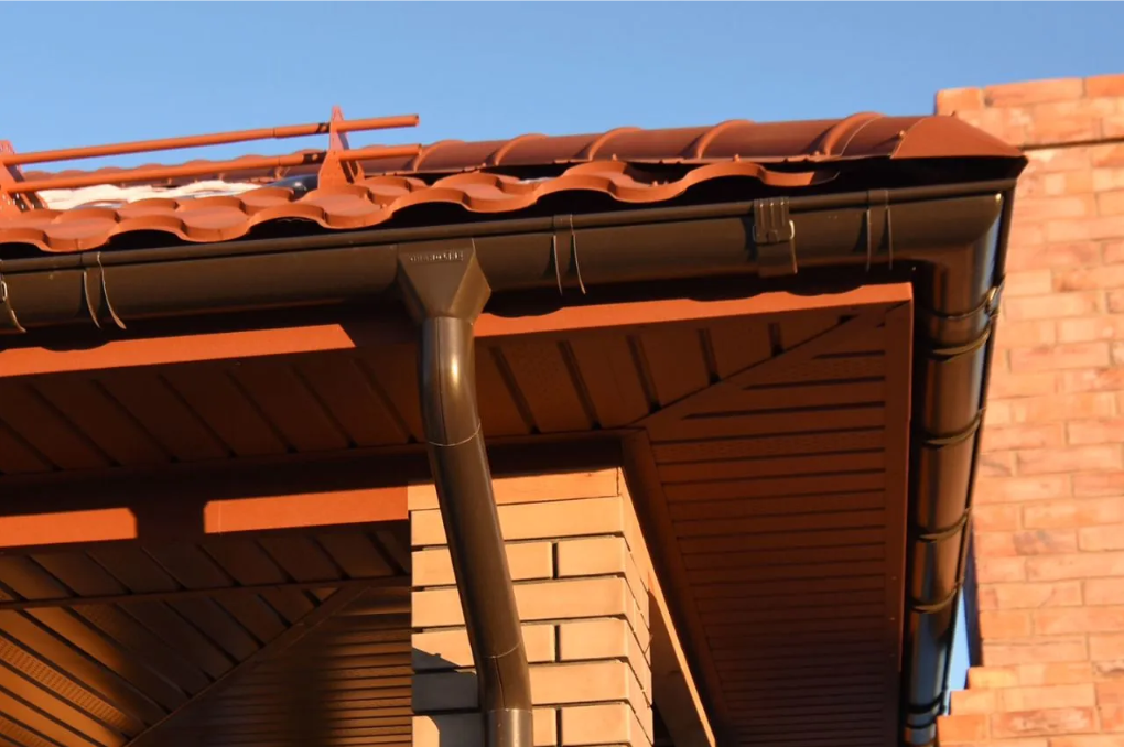 ✅ Срока службы кровли — правильный смонтированный водоотвод снижает нагрузку на крышу, уменьшает риск протечек и образования наледи, защищает свесы от деформации.
